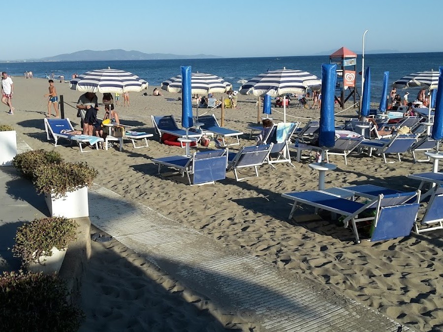 Clean, well-organized, and welcoming, Pinetina Sud is a perfect escape. The bar and restaurant area offers a pleasant breeze and a stunning sea view. With ample public parking nearby, you can easily explore the extensive pine forest and the long, free beach for leisurely walks. Castiglione della Pescaia boasts a beautiful beach with crystal-clear water and sandy shores. While the beach can be windy, making a sturdy umbrella essential, the paid bathing facilities offer convenience. For a memorable experience, make sure to enjoy the breathtaking panorama from the tables, despite some previous dining experiences falling short. Friendly staff and an overall scenic location enhance the visit.